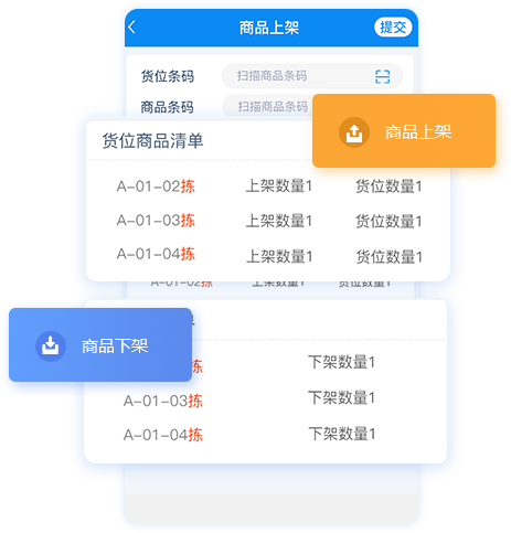 1. 扫描货位和商品,完善商品上下架登记