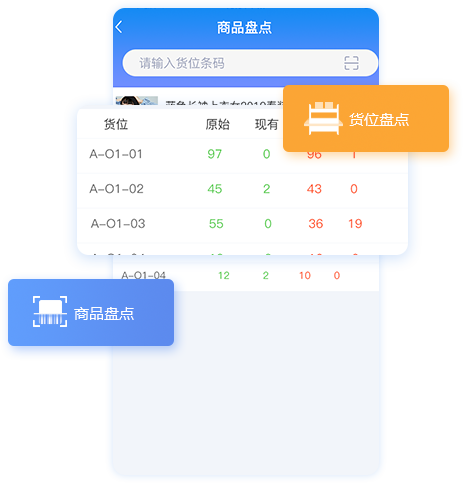 • 货位库存精准统计,改善缺货、丢货